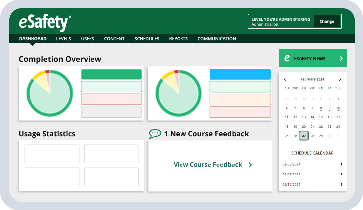 Schedule and report on all your eSafety Courses, Site-Specific Content, Toolbox Talks, and Expiration Tracking Items in one place! Add custom content by using our Course Builder, Upload feature, or SCORM option.